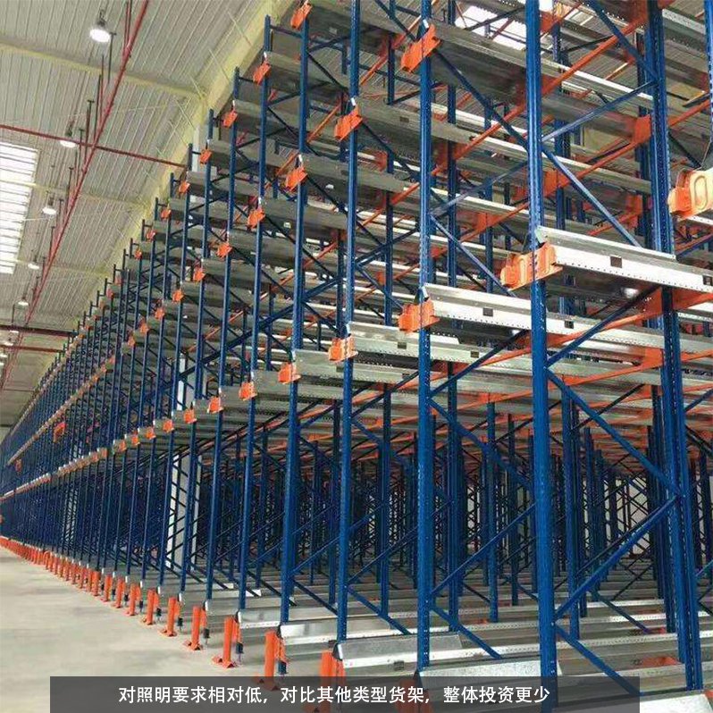 3)横梁式货架:是*流行、*经济的一种货架形式、安全方便,适合各种仓库,直接存取货物。是*简单也是*广泛使用的货架。可充分地利用空间。采用 方便的托盘存取方式,有效配合叉车装卸,极大提高作业效率。机械设备要求:反平衡式叉车或堆高机。堆高机可提高地面空间使用率30%,操作高度达16米 多;横梁式货架的特点:流畅的库存周转。可提供百分之百的挑选能力。提高平均的取货率。提供优质的产品保护。地面使用率:31%,偏低(需依上述设计计 算) 4)重力式货架:相对普通托盘货架而言不需要操作通道,故增加60%的空间利用率;托盘操作遵循先进先出的原则;自动储存回转;储存和拣选两个动作的分开 大大提高输出量,由于是自重力使货物滑动,而且没有操作通道,所以减少了运输路线和叉车的数量。在货架每层的通道上,都安装有一定坡度的、带有轨道的导 轨,入库的单元货物在重力的作用下,由入库端流向出库端。这样的仓库,在排与排之间没有作业通道,大大提高了仓库面积利用率。但使用时,*好同一排、同一 层上的货物,应为相同的货物或一次同时入库和出库的货物。层高可调,配以各种型号叉车或堆垛机,能实现各种托盘的快捷存取,单元货格*大承载可达 5000kg,是各行各业*常用的存储方式。 5)悬臂式货架:适合存放长料货物和不规则货物.前伸的悬臂具有结构轻巧,载重能力好,并且对存放不规则的或是长度较为特殊的物料时,能大幅提高仓库的利 用率和工作的效率。增加了搁板后,特别适合空间小,高度低的库房,管理方便,视野宽阔,与普通搁板式货架相比,利用率更高